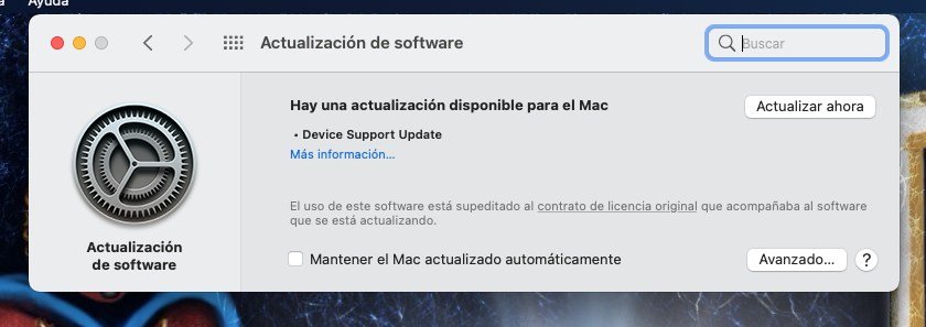 En Actualización del Software en Preferencias del Sistema apareció el uno en rojo característico, y dentro sin número de actualización ni nada: