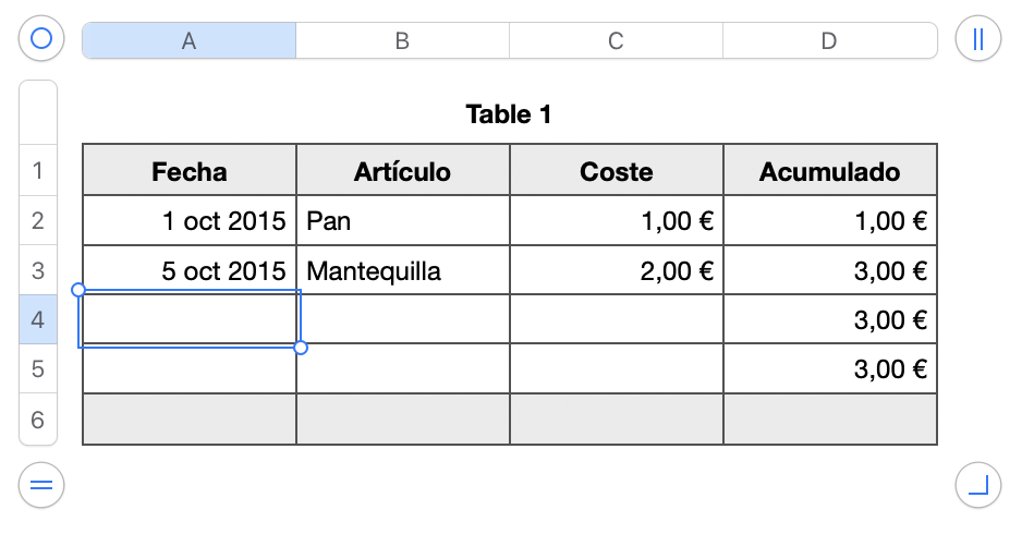 - En la celda A4, introduce la fecha.