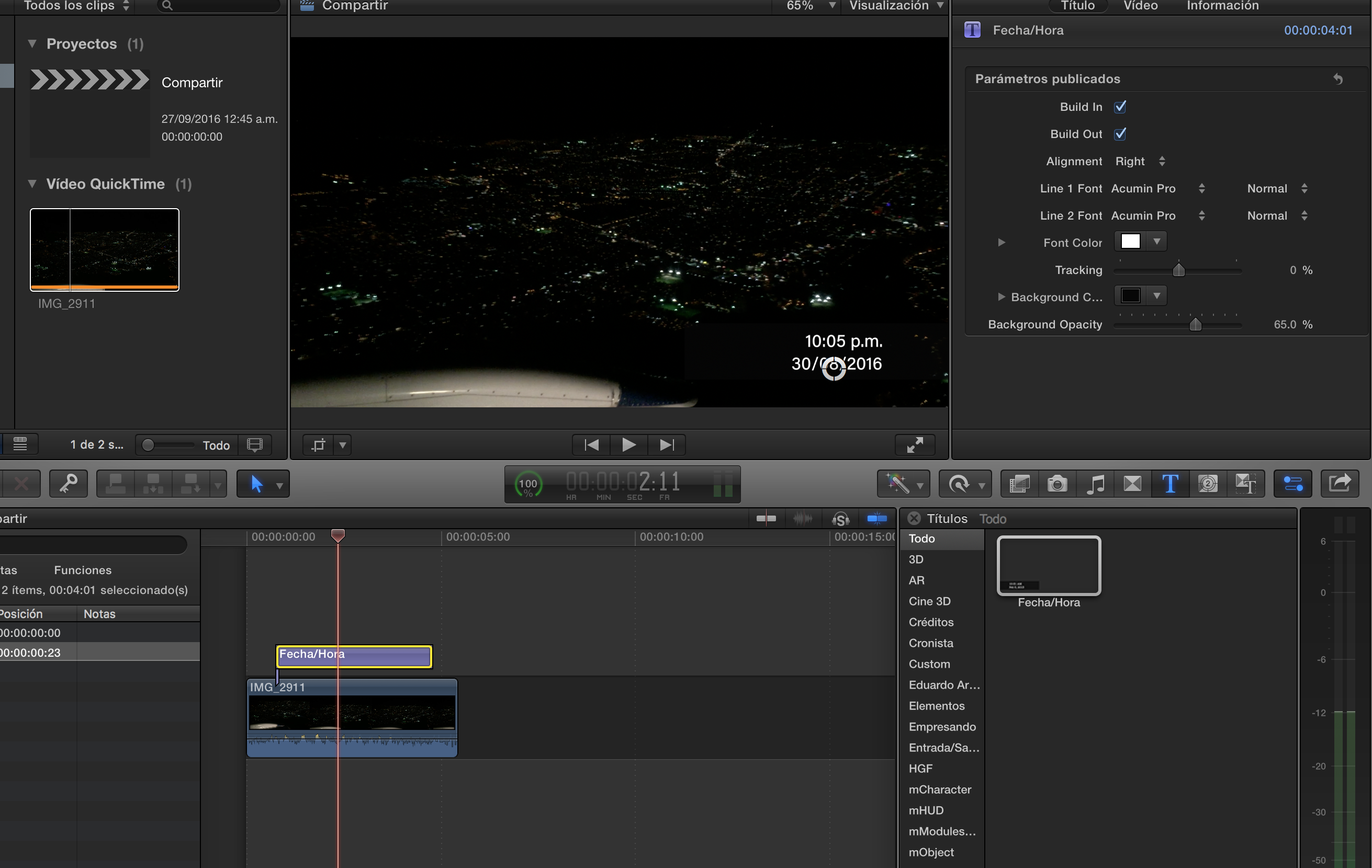 ¿Como insertar (quemar) fecha y hora del evento sobre el video grabado con iPhone 5S, usando Final Cut o iMovie?