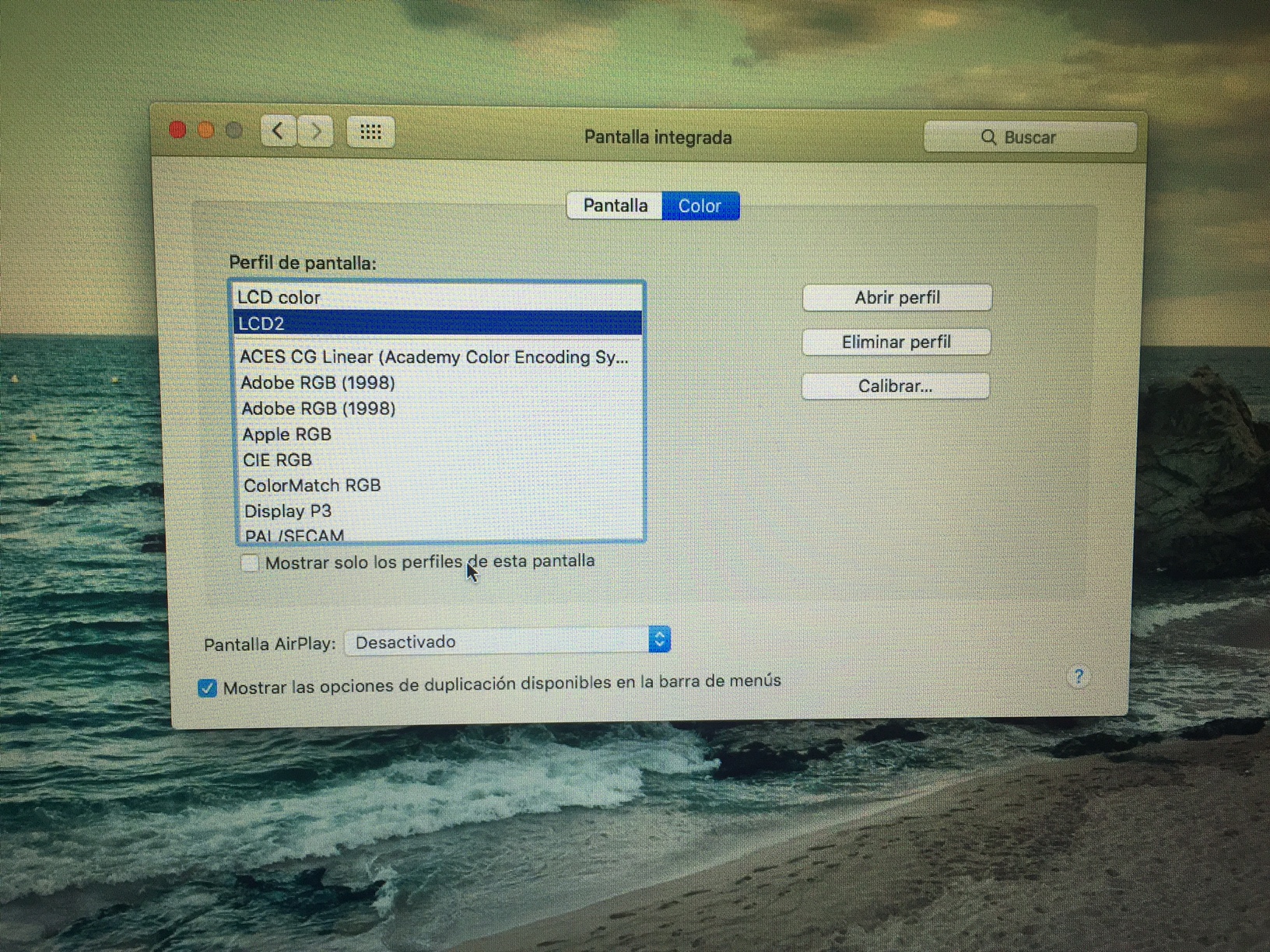 Quisiera hacer el tono de mi pantalla un poco más frío, en el iMac lo hice mediante Ajustes -> Pantalla -> Color y calibré el color a mi gusto, pero en Macbook Air al configurar un nuevo perfil de color todo se vuelve de color cálido o sepia, ponga el tono que ponga.