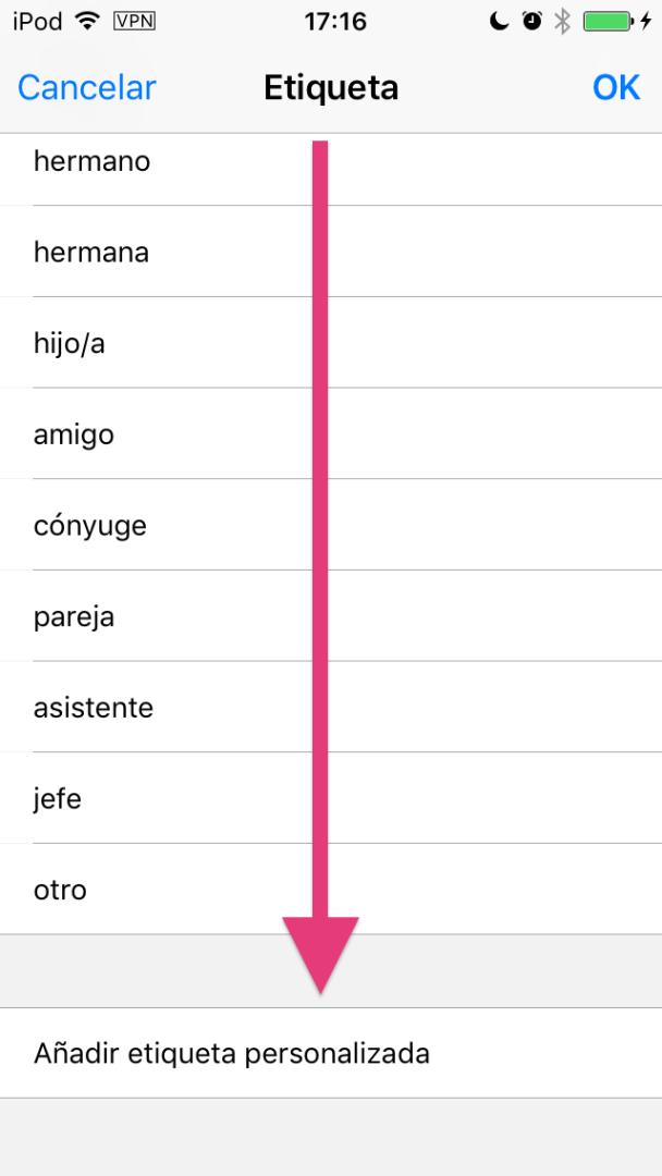 ¿Por qué sólo me salen 3 posibles relaciones para un contacto al editar y seleccionar "Añadir nombre relacionado" y no me aparece la opción de personalizar, como según internet, debiera aparecer???