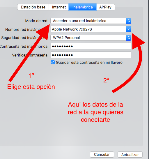 Hago todo lo q me decis y me salta un cartel q dice (esta estación base AirPort está configurada para unirse a una determinada red inalámbrica que no se ha encontrado.si no ve la red a la que desea unirse asegúrese de que el dispositivo inalámbrico está conectado y dentro del radio de alcance de la estación base AirPort) que hago????