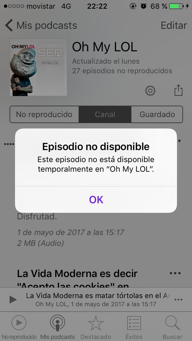 No me deja escuchar Podcasts de el proveedor de la cadena ser en mi iPhone 5s