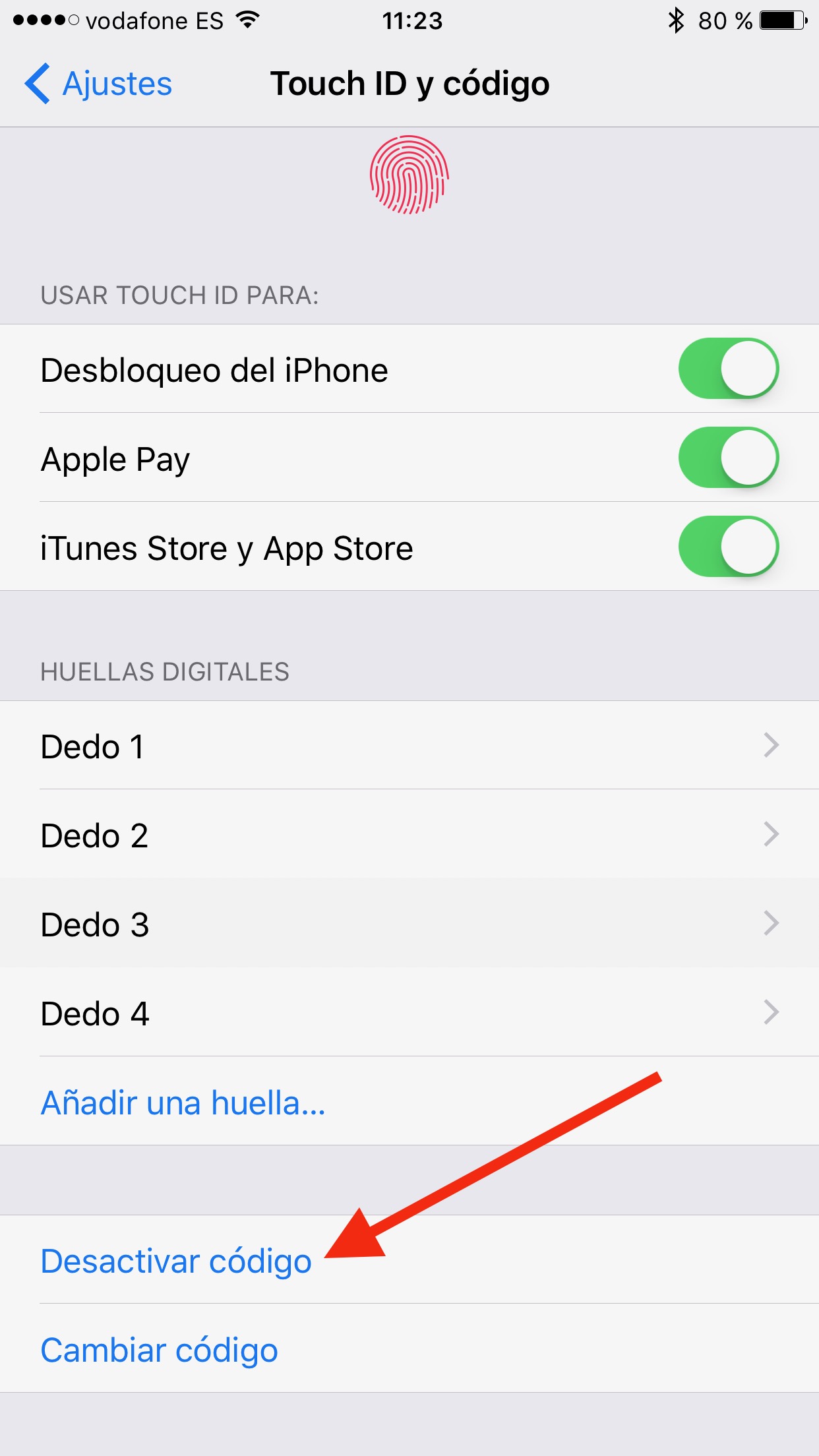 No me deja desactivar mi codigo de deguridad