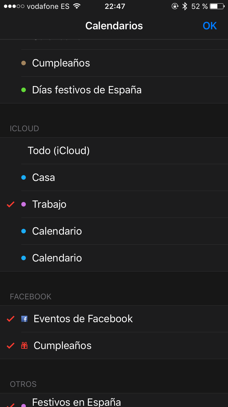 La primera, el Calendario, ¿en qué opción lo tienes, en Duplicar del iPhone o Personalizado?.