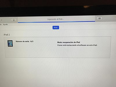 Buenas, tengo mi ipad 2 que no enciende, no se golpe ni mojo ni nada raro, lo venia usando como todos los dias normalmente, al otro dia lo fui a usar como siempre y estaba apagado, lo puse a cargar (aclaro que lo deje mas de un dia cargando y probe con varios cables e incluso varios cargadores, todos originales y que en otros equipos funcionan de 10), y no carga ni enciende, ahora si lo conecto al itunes me lo detecta en modo de recuperacion, le doy a recuperar, me dice que se va a borrar todo el contenido y actualizar le doy que si, arranca bien descarga la version de ios, extra el soft y demas paso el ipad enciende con la manzanita y la barra de abajo vacia y el itunes queda en "esperando el ipad" y hasta ahi llega, intente reiniciar poner en modo DFU y de todas las formas posibles siempre queda igual, aclaro tambien que probe en otra pc y tambien me pasa igual. adjunto imagenes de lo que menciono, agradeceria mucho si alguien me puede ayudar.