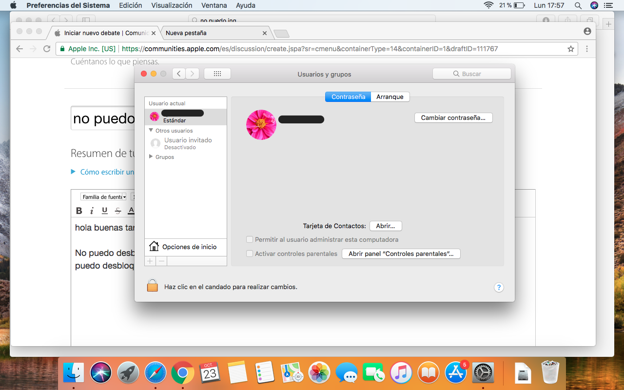 no puedo desbloquear las preferencias del panel usuario y grupos mac