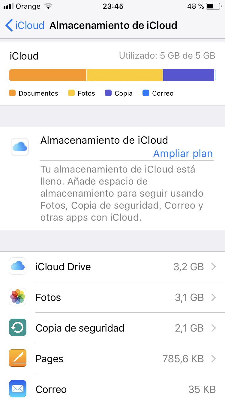 Es posible que aun así no consigas liberar ese espacio, y por eso te recomendaría que aumentaras algo tu almacenamiento de iCloud, porque por muchos consejos que te demos, el problema se repetirá tarde o temprano. Creo que tu iPhone necesita una limpieza y lo más recomendable es que pudieras realizar una copia de seguridad de todos los datos y ajustes del iPhone en iCloud, para después restaurar a valores de fábrica. Sobre todo, porque iCloud optimiza no haciendo copia de los datos o ajustes innecesarios pertenecientes a la categoría “Otra”, de manera que cuando recuperes los datos de la copia de seguridad realizada en iCloud, el exceso de ocupación del iPhone desaparecería en gran parte.