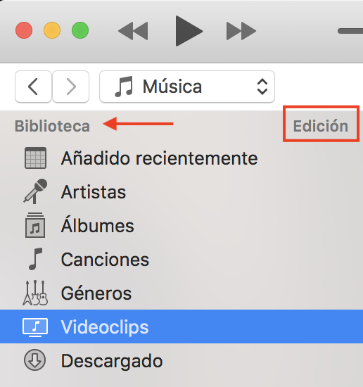 He colocado el cursor sobre Biblioteca (flecha) y me ha aparecido la opción Edición como lo ves en la foto.