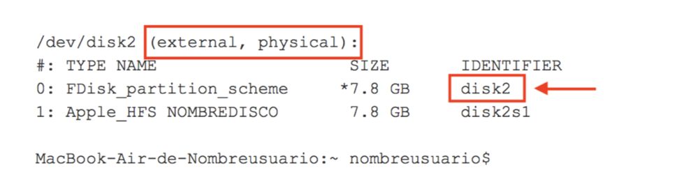 diskutil eraseDisk JHFS+ “NOMBREDISCO” GPT disk2