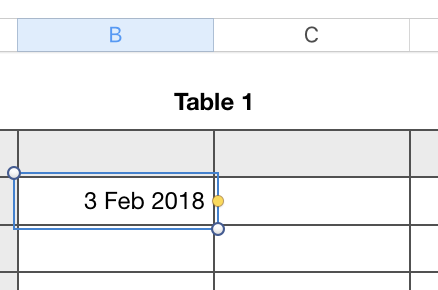 Desplace el cursor sobre el borde derecho para ver el punto amarillo ("Mango de relleno").