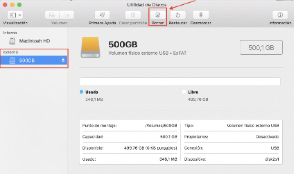 Si está vacío lo primero que tienes que hacer es conectarlo al Mac y abrir Utilidad de discos.