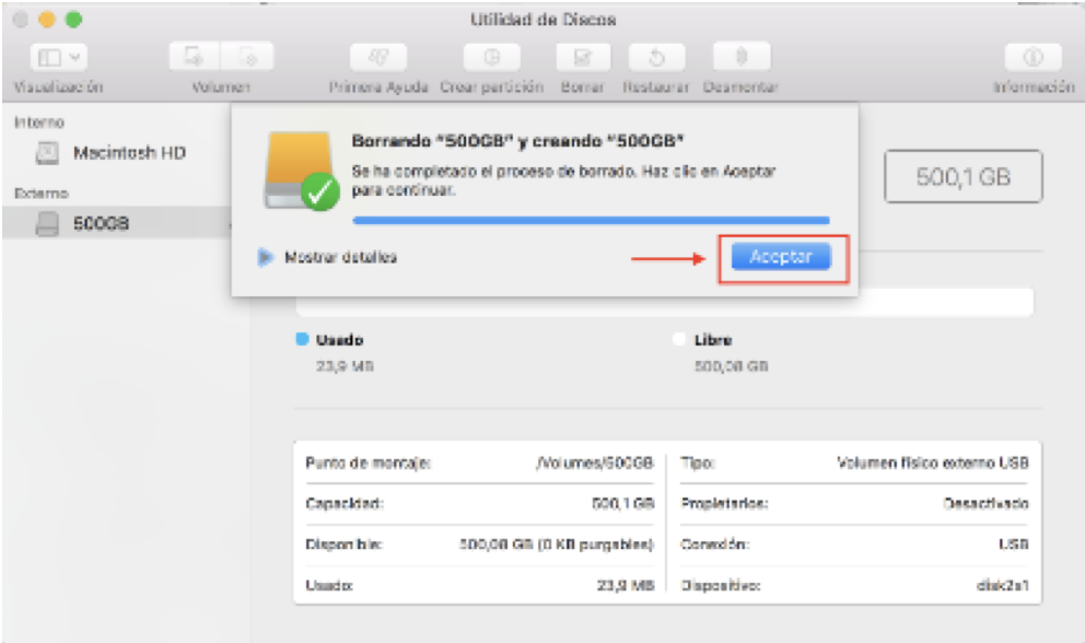 Cuando veas que ha terminado el proceso, pulsa en Aceptar