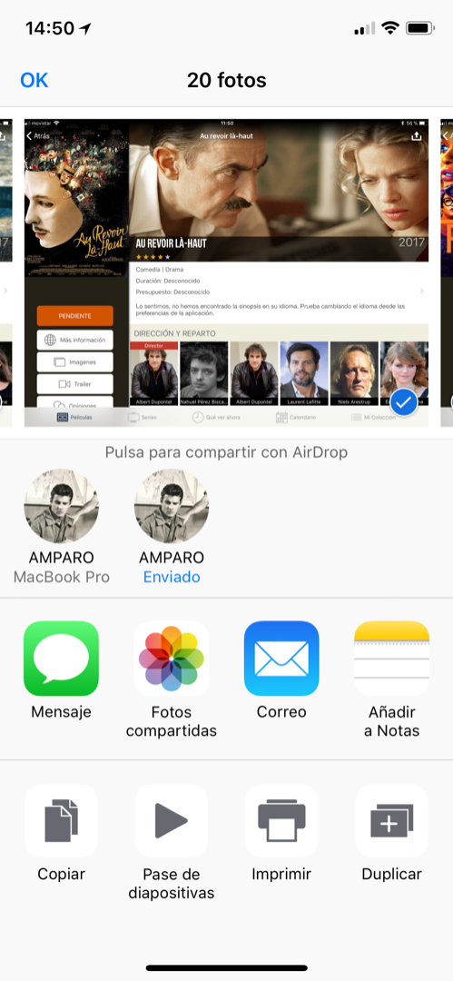 Después de seleccionarlas, pulso en el icono de Compartir