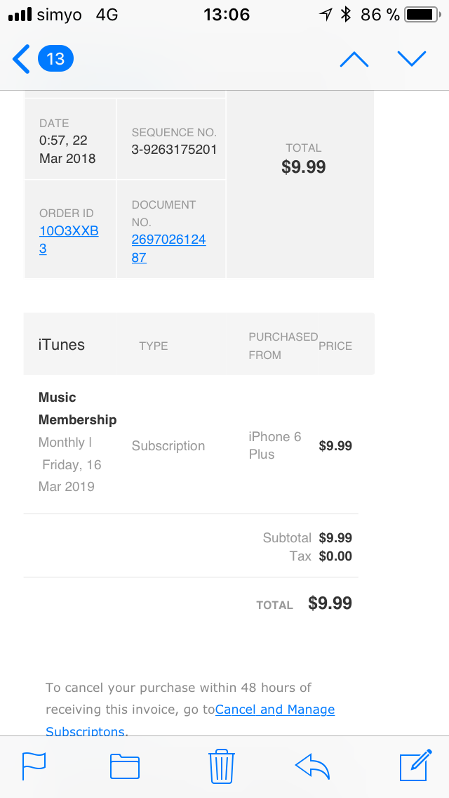 Hay cosas que siempre aparecen en las facturas de Apple: tu iD de Apple, tu dirección de facturación con nombre y dirección, y el método de pago. Es decir, si pagas, por ejemplo, con una tarjeta de crédito, que tipo de tarjeta y los cuatro últimos números. Lo demás, se lo pueden inventar: fecha, ID de pedido, número de documento, de secuencia...