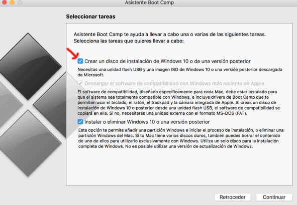Quiero usar el Asistente Boot Camp para hacer un Usb con Windows 7 y el caso es que ni me reconoce el USB ni me da la opción de crear disco de Windows.