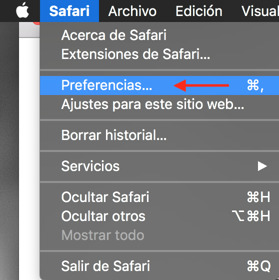 Arriba en la barra de menús de Safari pulsa en Preferencias