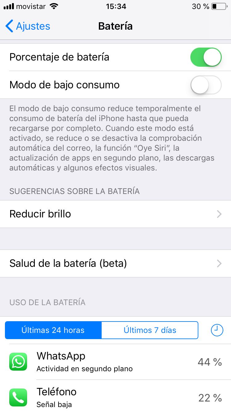 No entiendo como el teléfono me puede haber gastado el 22% y el whatsapp en espera el 44%