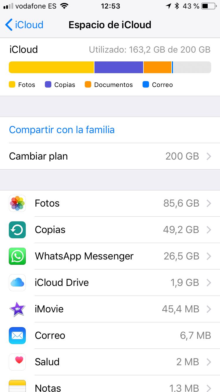 He hecho dos nuevas restauraciones, con el móvil conectdo a la corriente y con un wifi de mayor velocidad, pero el resultado es el mismo. WhatsApp reconoce el número de fotos de cada chat, pero luego no se ven. Es más, el peso de la App pasa a ser de 1,9 GB en mi móvil, no los 28,44 GB de la copia. Dentro de iCloud me sigue figurando una copia de 26,5 GB. Y ahora descubro para mi sorpresa que en la copia de mi móvil figura que los datos de WhatsApp son ¡50,37 GB!