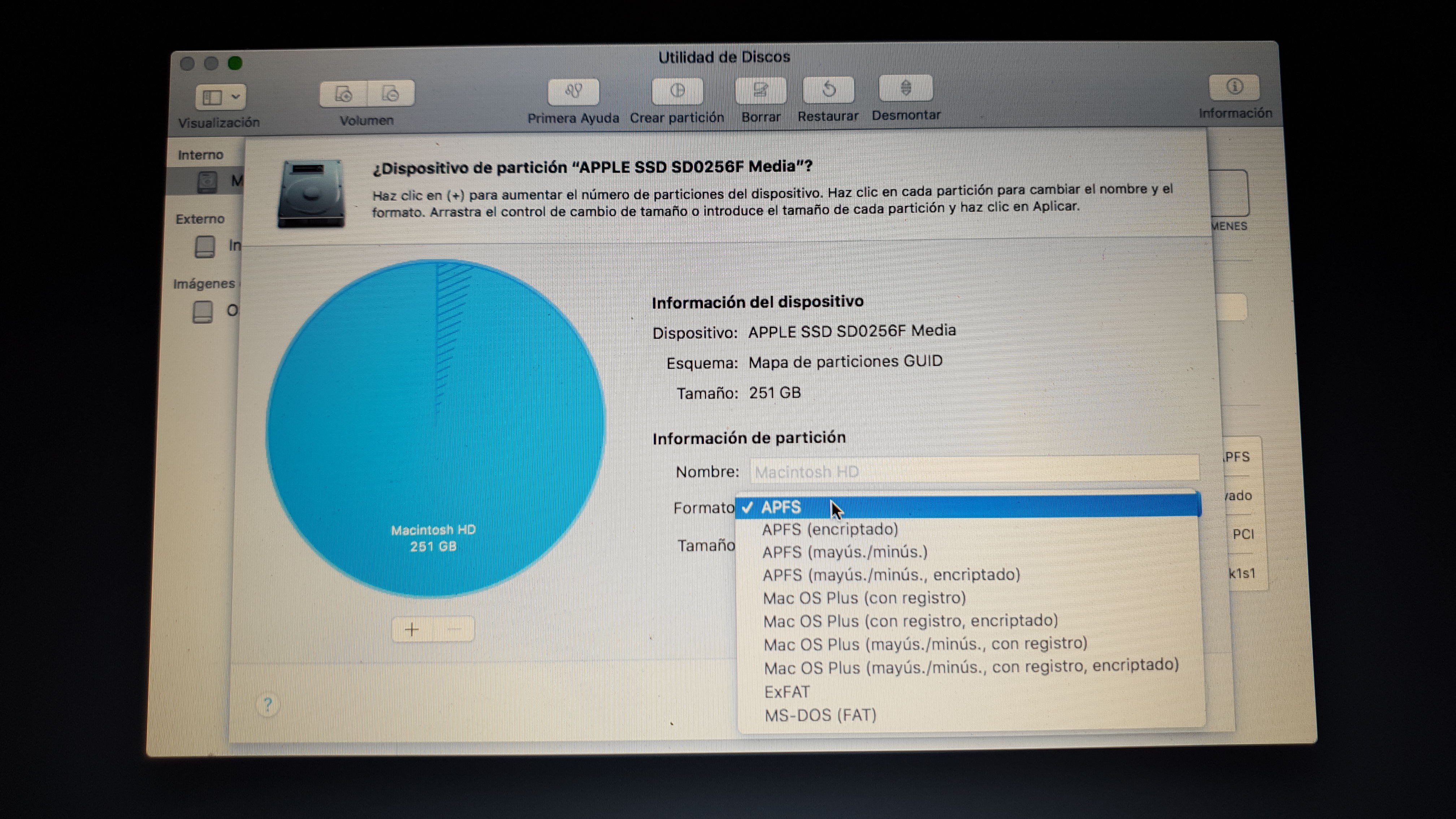 Una vez arranco el Mac desde el pendrive procedo a borrar el disco duro. El proceso se realiza de forma correcta.