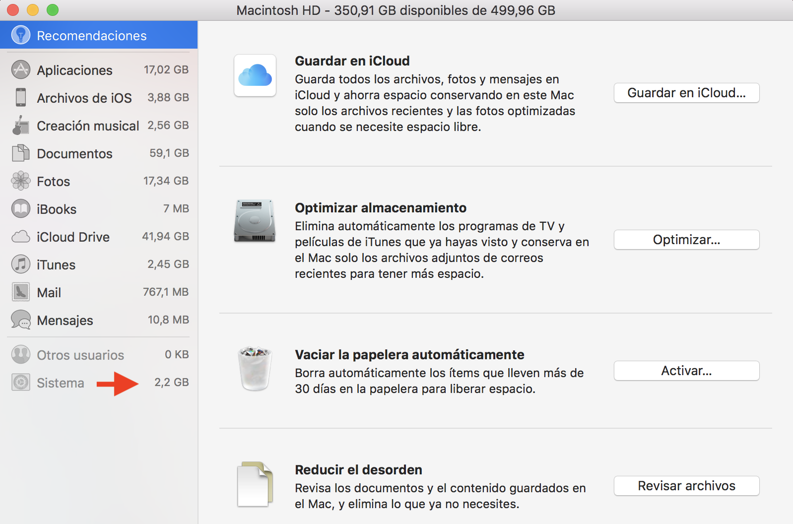 mac no libera espacio al borrar archivos
