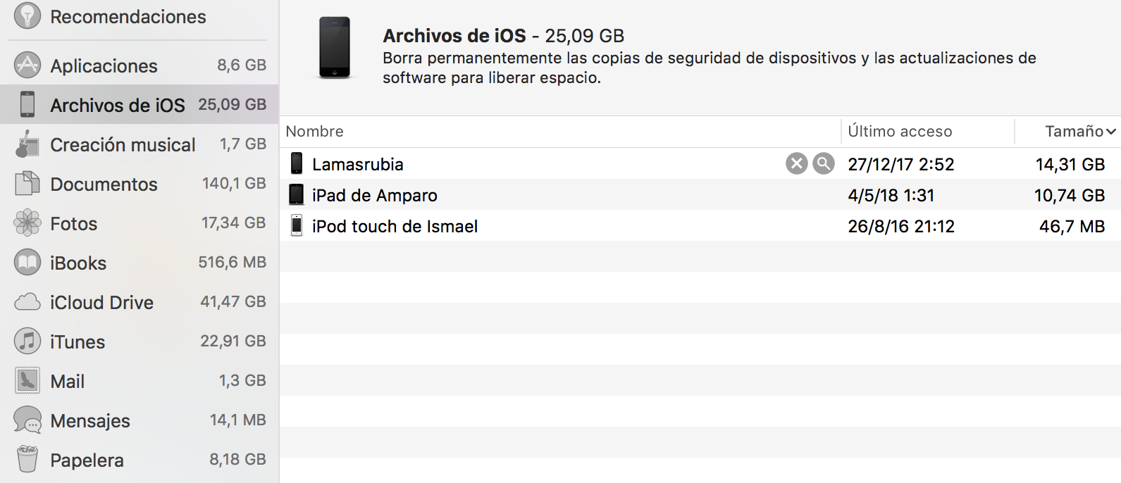 Buenos días, tengo una consulta que no he logrado encontrar respuestas. Tengo 4 copias de seguridad en iTunes más un archivo .ipsw de la última actualización. Hay algún problema en borrarlos? Tengo un MacBook Pro con un SSD de 250GB y entre todo eso me suman 30GB aproximadamente.