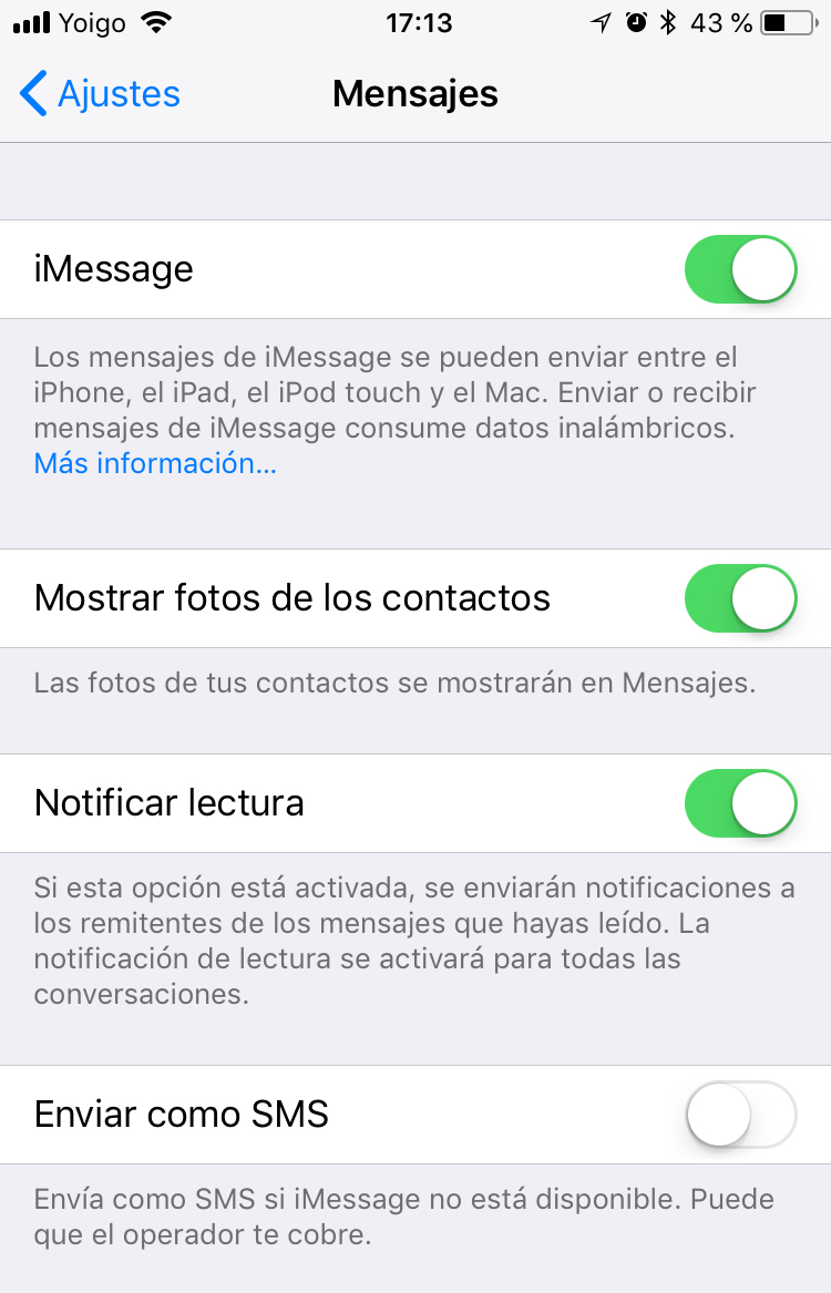 OJO!!! la activación de iMessages requiere de un SMS a UK y este tiene un gasto, no es gratis. Y si la activación no se realiza a la primera el dispositivo lo intenta varias veces, por lo que ese mes puedes tener varios cargos de SMS internacionales.