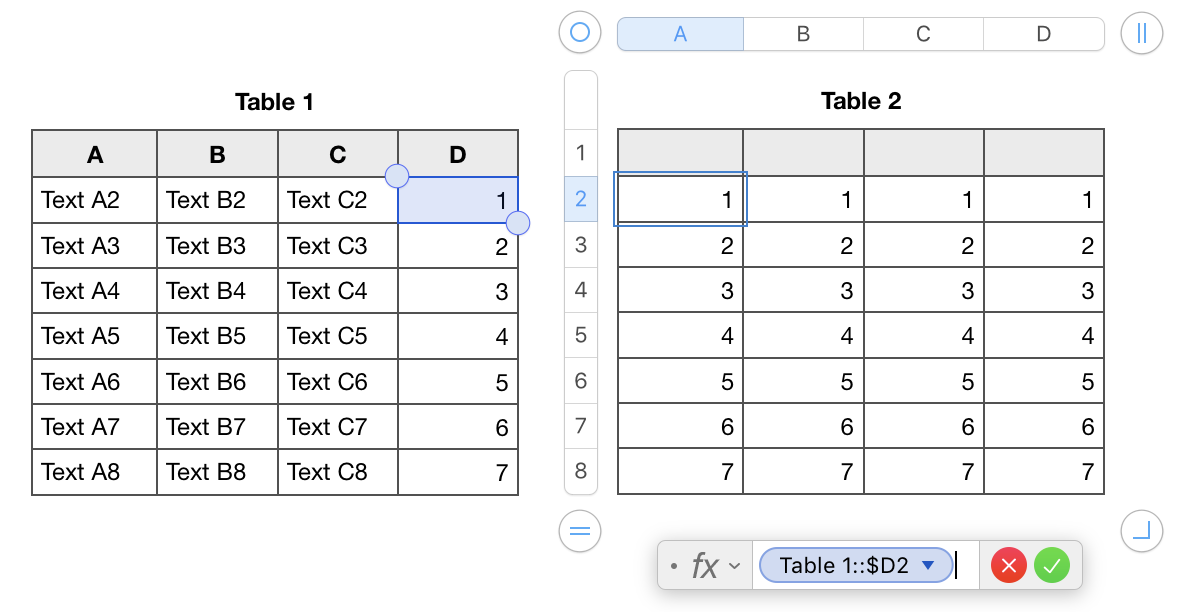 Fórmula en la Tabla 2 A2 (y Rellenar hacia abajo, Rellenar hacia la derecha)