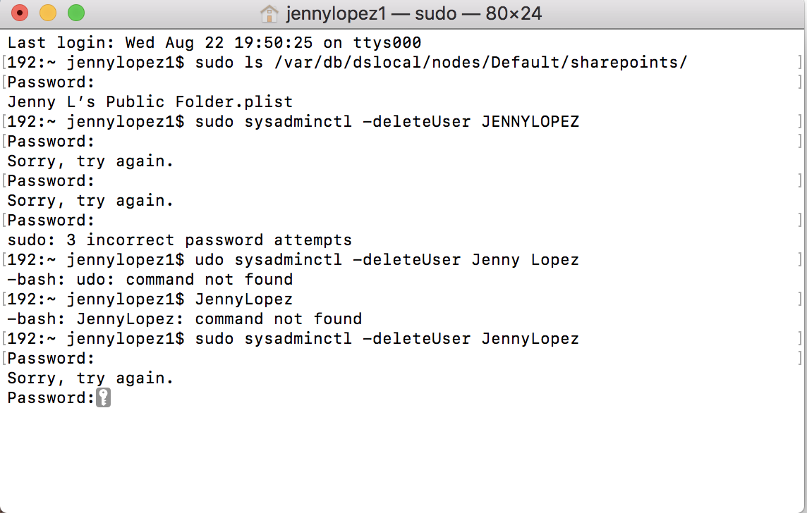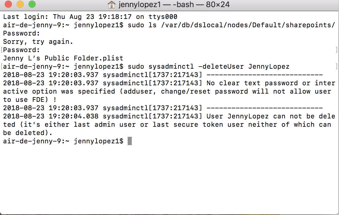 bueno mi problema es el siguiente hice la copia de seguridad de la Macbook air travez de Migracion Assistant y automaticamente me aparecieron varios usuarios en el nuevo macbookpro el cual pude ir eliminando pero aun me queda un usuario que es como una copia idéntica de mi antiguo compu y me esta ocupando mucho espacio y no me permite eliminar me pide un password lo ingreso y no lo acepta, lo cambio y no lo permite he tratatwto de eliminarlo también desde el terminar y tampoco.