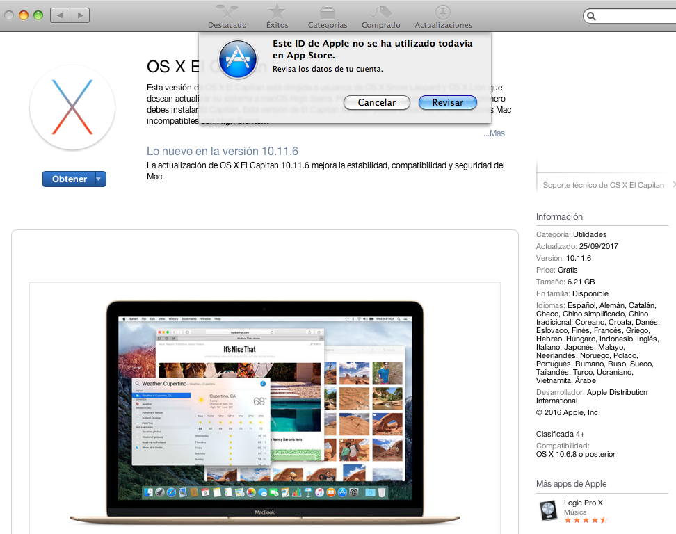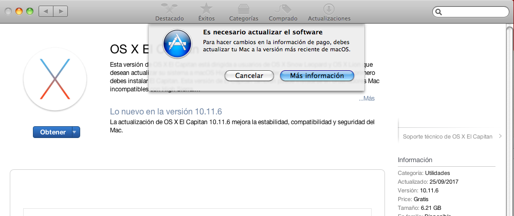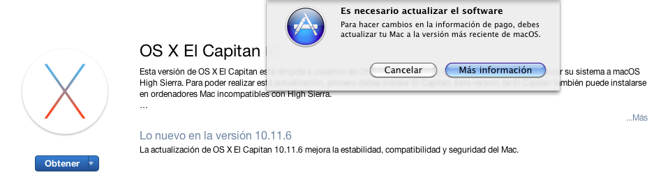 Pero cuando me dispongo a bajar El Capitan desde la App Store obtengo el mismo mensaje que fededemadrid: