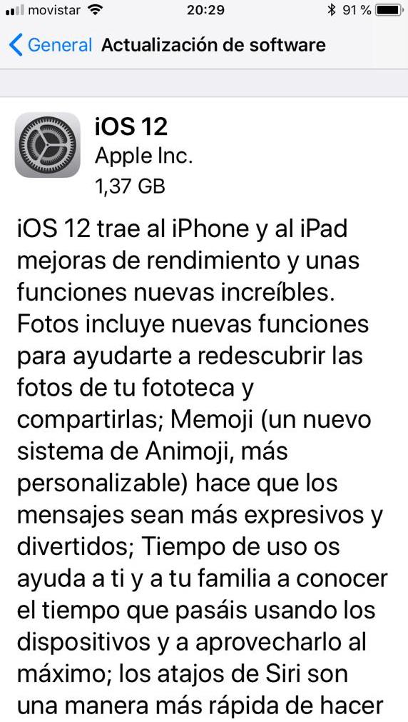 1,37 GB. Yo ya lo he descargado e instalado. Es una captura de otro iPhone de la casa. Concretamente de un iPhone 6