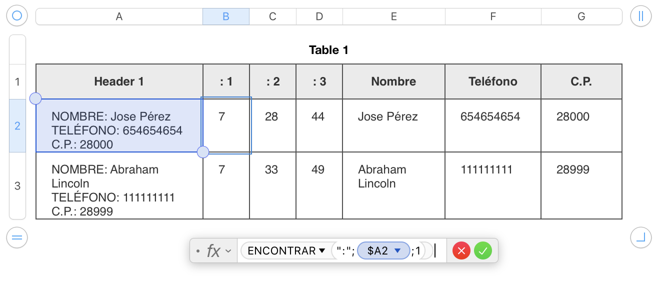 No consigo hacer que un texto que está en una celda se separe en varias columnas.