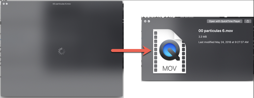 Desde hace unos días no sé qué pasó pero QuickLook no me permite previsualizar ningún archivo excepto audios. Antes funcionaba perfecto pero ahora cuando presiono la tecla 'espacio' en mi teclado, los videos .MOV, .MP4 (y otros), las imágenes .JPG, .PNG (y otras), los archivos .PDF, entre otros, no cargan una vista previa directamente en Finder.