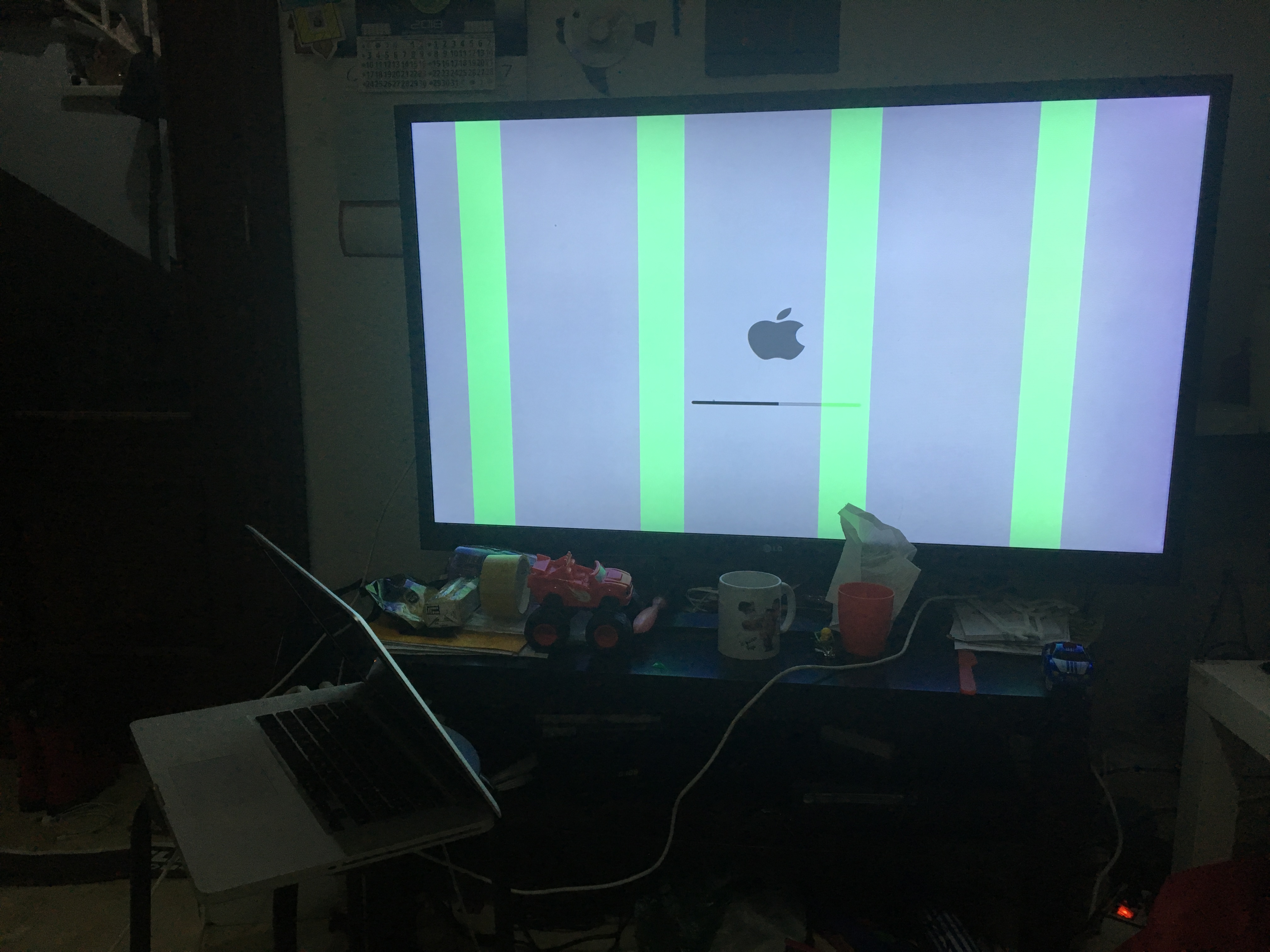 Tu equipo no inicia por que como se ve en la imagen tienes un problema de gráfica, por ello no inicia y no podrás hacerlo aunque lo restaures. Es un fallo de esos equipos pasado el tiempo y la solución no es buena, o cambio de placa (muy caro y mas con los años que tiene ya este equipo) o buscar un Servicio de micrsoldadura que te haga un cambio de chip gráfico. Hay enpresas qeu hacen "Reballing" pero eso no es duradero y yo no lo aconsejo.