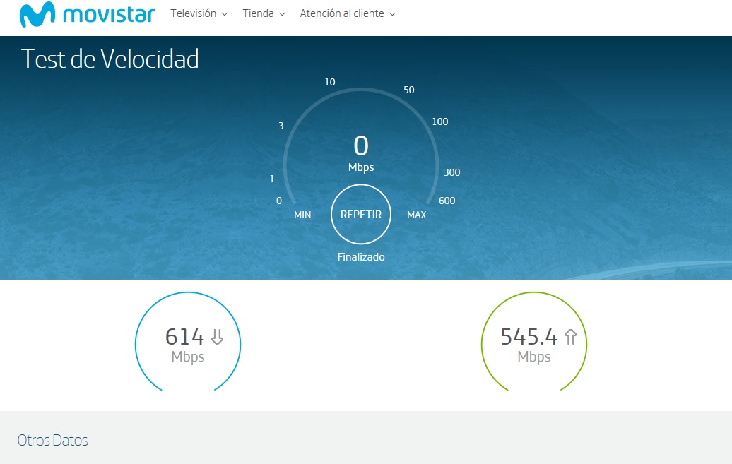 Mi conexión a internet son 600MB de fibra óptica de Movistar+ fusión.
