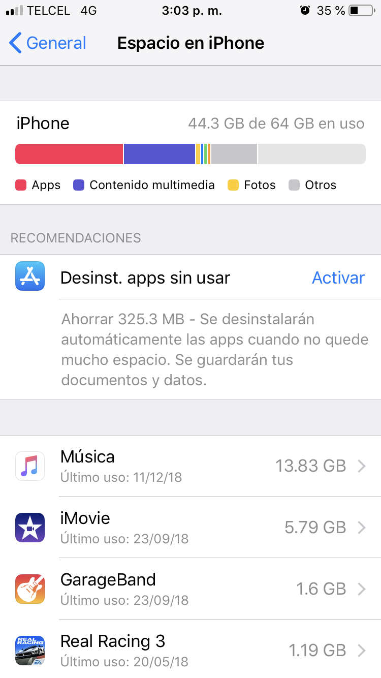 También hay que tener en cuenta los archivos temporales. El sistema operativo de tu dispositivo, iOS, va guardando archivos temporales según el uso que hagas del dispositivo. Con la música o vídeos en streaming, viendo fotos o vídeos de la Fototeca (si no hay espacio en el dispositivo, las fotos están en iCloud y se descargan temporalmente en el dispositivo para poder verlas), etc. Todo eso va generando unos archivos temporales que van ocupando memoria en el dispositivo, pero iOS los va borrando o sobre escribiendo según vea que falta capacidad. Es algo automático.