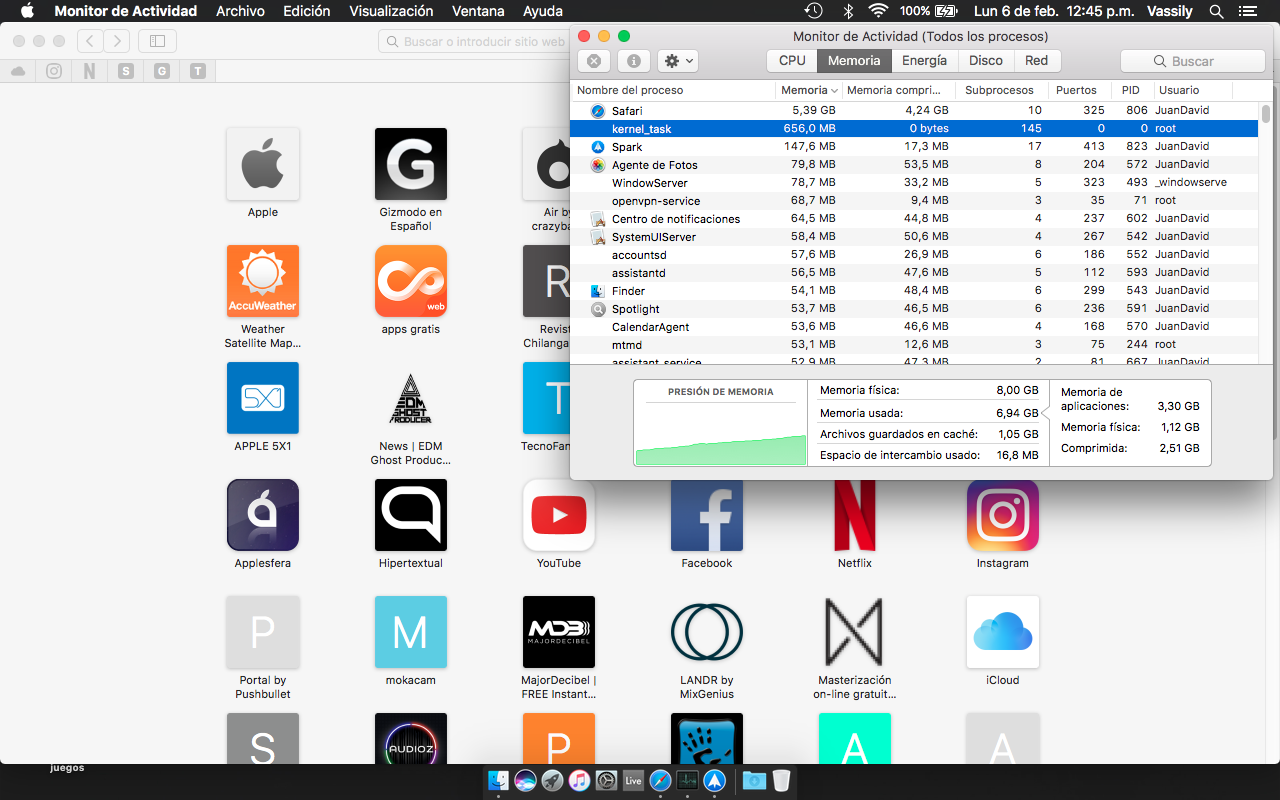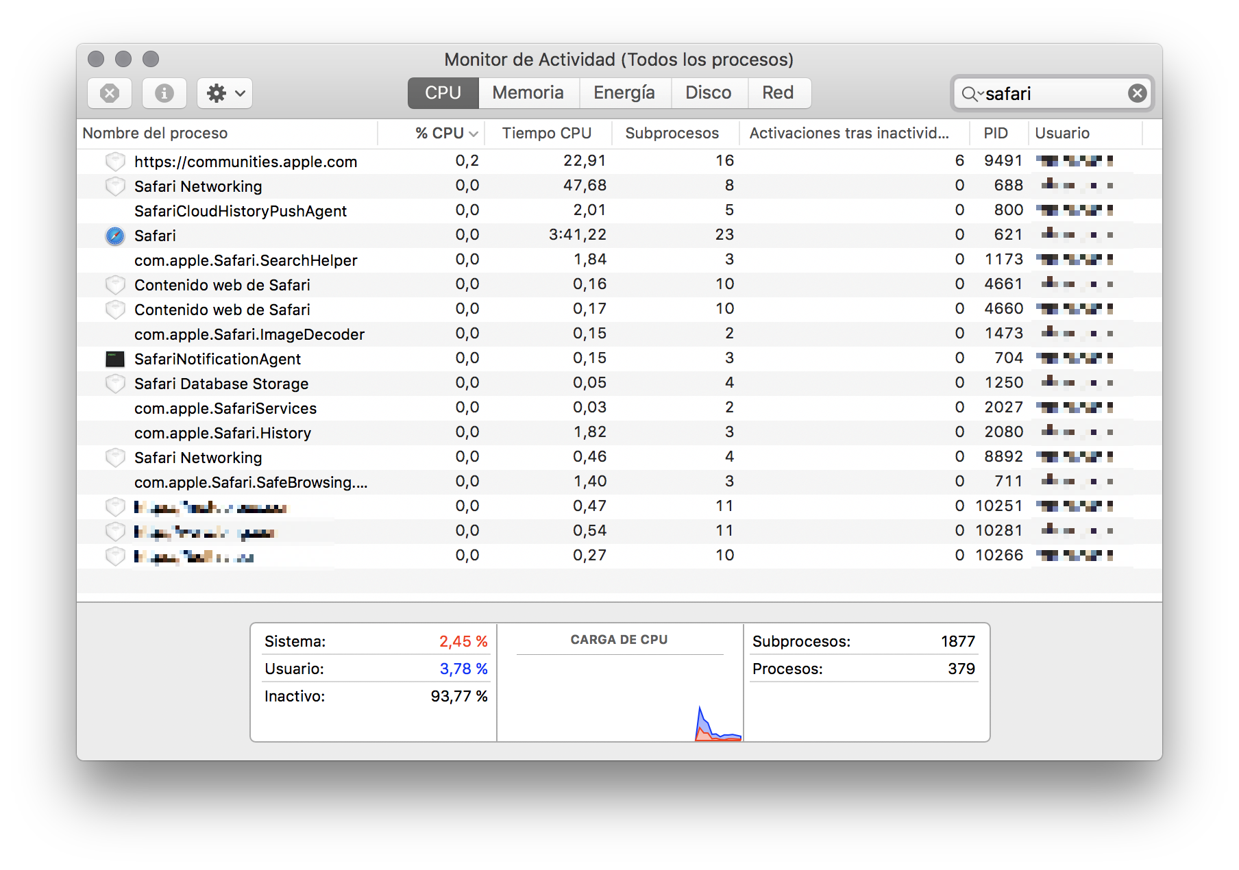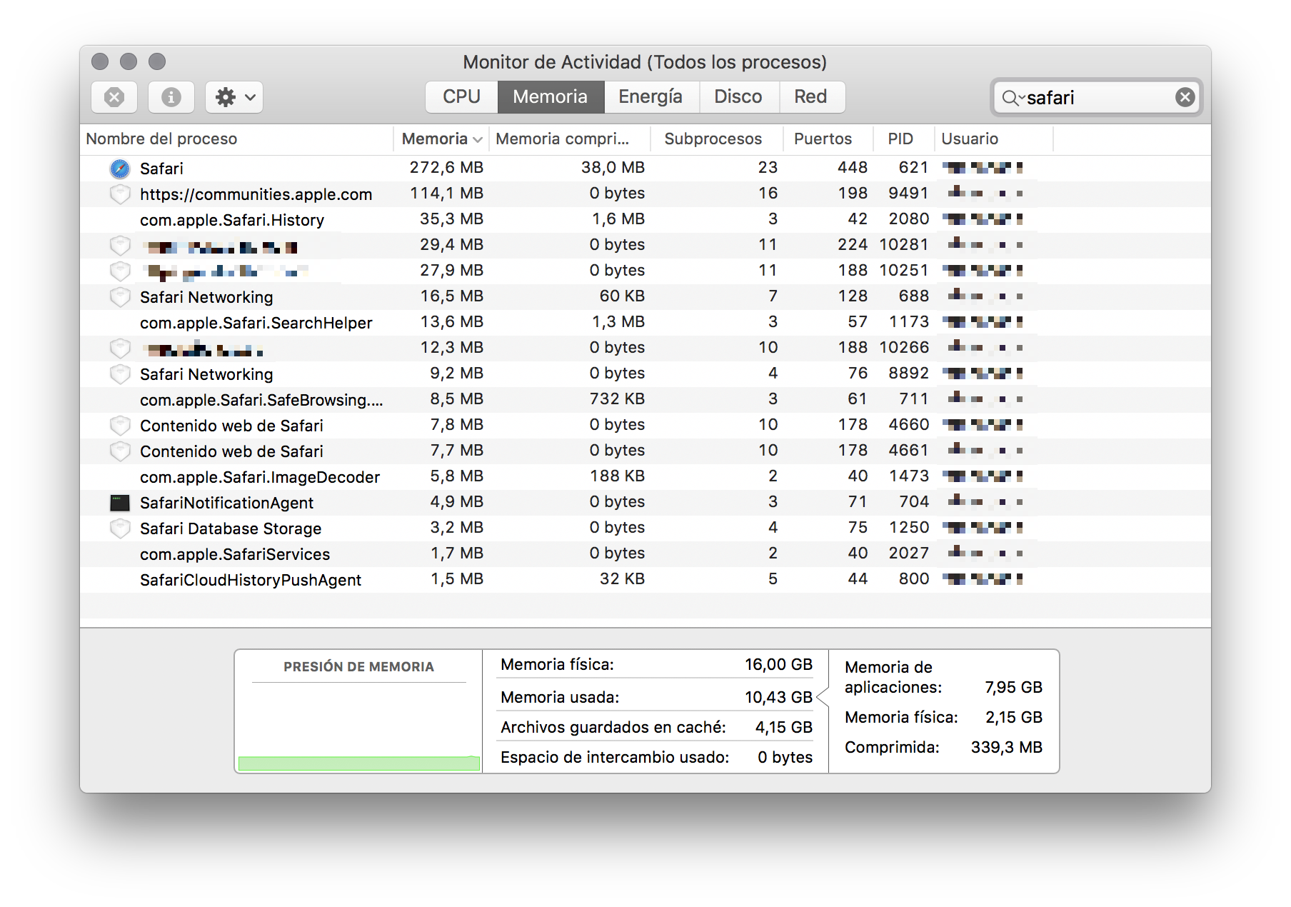 Te mando los consumos de Safari en mi ordenador, con cuatro pestañas abiertas, a ver qué te parece.