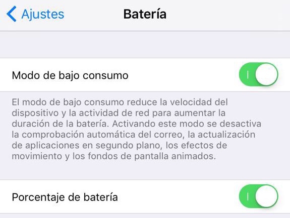 ℹ Para activarlo o desactivarlo entra en Ajustes > Batería > Modo de bajo consumo Off/On