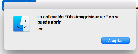 La aplicación "DiskImageMounter" no se puede abrir. -36