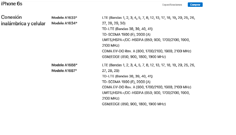 En el imagen están los modelos de IPhone 6s y las bandas que se conectan; comienza validando eso con el modelo de dispositivo que tienes y la banda que se conecta y compara con tu operador, si son similares ya se trataría de problema de liberación.