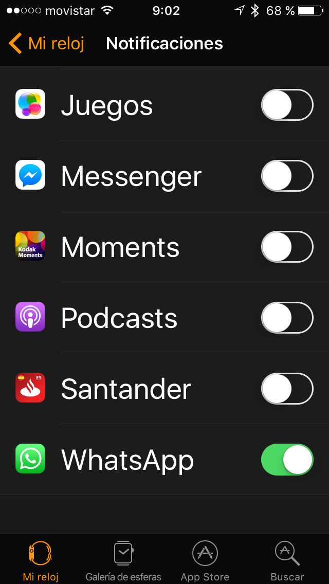 Comprueba que tienes activado WhatsApp en la app Watch del iPhone, Notificaciones.