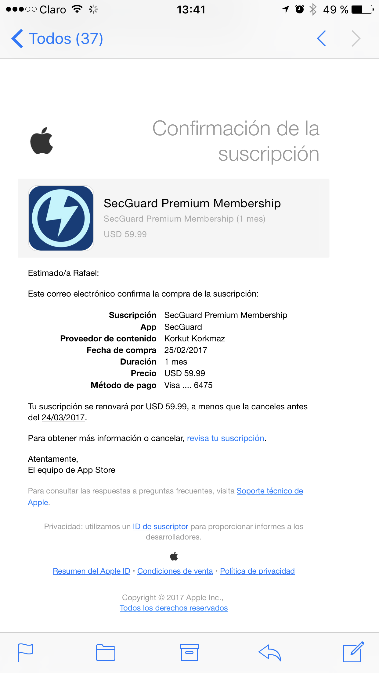Me cobraron 59,99$