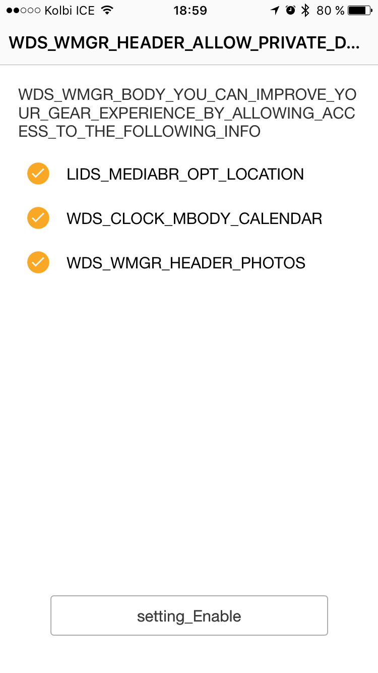 Sin embargo no funciona, se conecta el BT pero en la pantalla del reloj se queda en "configurando" y el teléfono la pantalla de la aplicación se queda en *****. Por otro lado la aplicación Gear S, tiene un interfaz diferente.