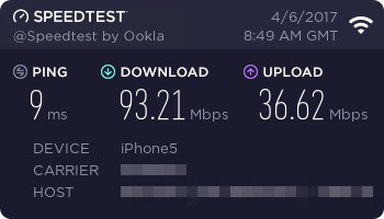 Puedes hacer un test con alguna App. Este es el mío (con un iPhone 5), el cual no está mal creo yo. Un 5S no necesariamente tiene que ser más rápido por todo lo que comento arriba, demasiados factores.