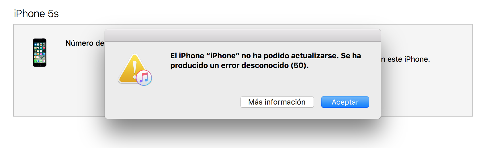 Error 50 en iPhone 5s al actualizarlo
