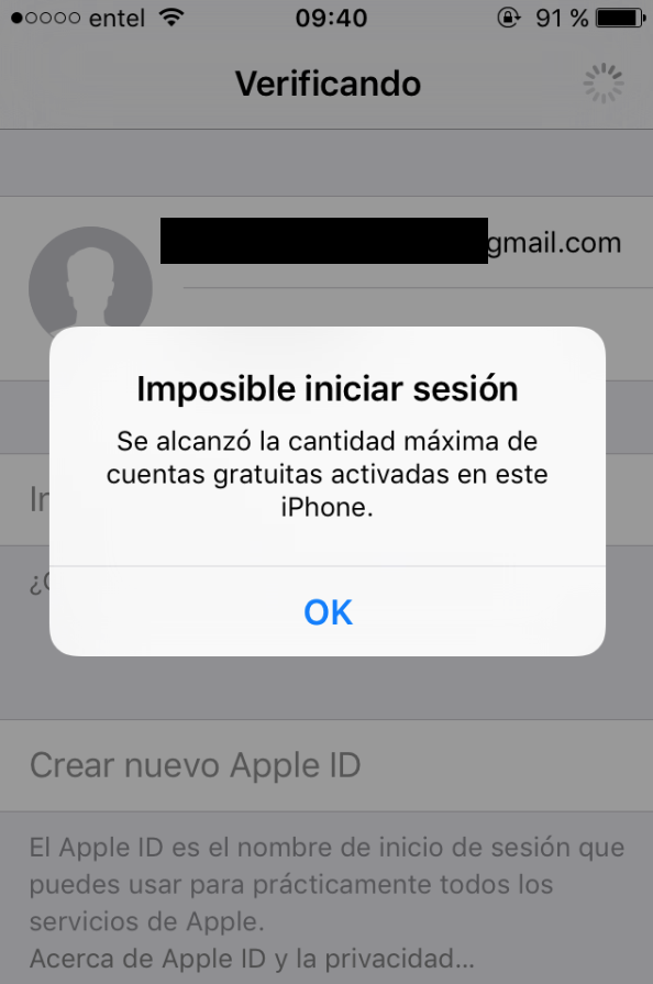 Solución del limite de cuentas de iCloud