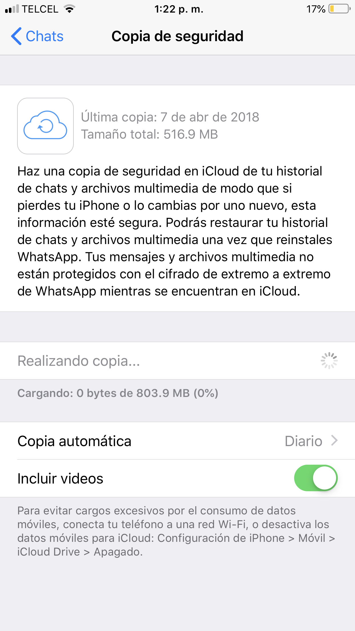 Tengo suficiente espacio en icloud y buenas conexión a Wi-fi, pero algo me impide hacer el respaldo.
