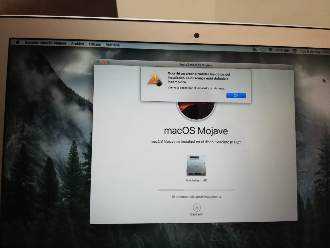 Siempre que intento instalar MacOS Mojave aparece ese cuadrito.