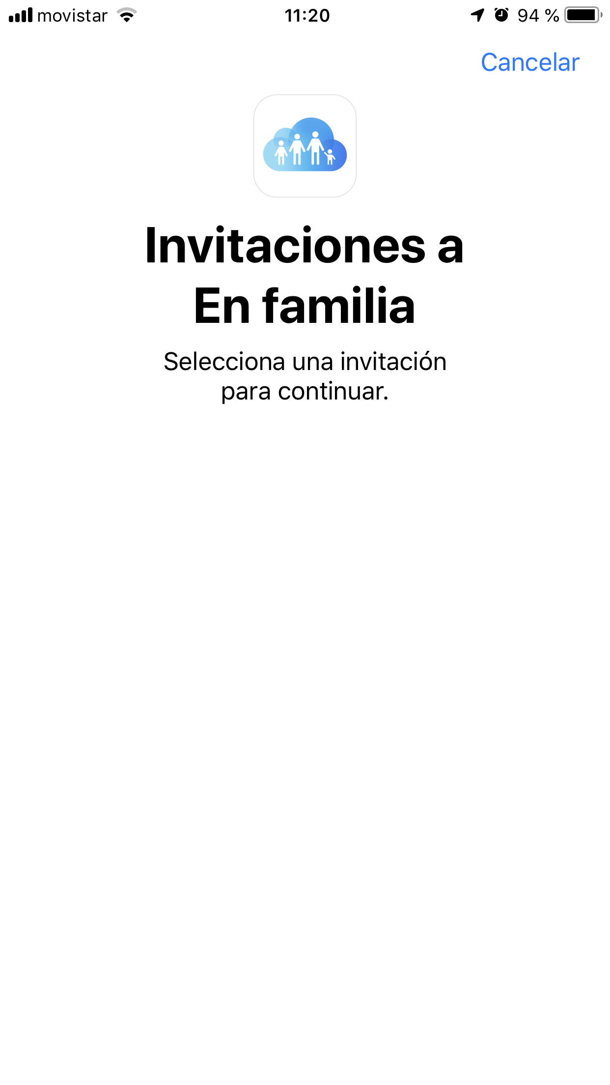 Hola, mi hija me ha enviado una invitación para Compartir música en familia, pero cuando le doy click a la invitación pasa a la siguiente pantalla, dice Selecciona una invitación para compartir” pero no aparecen las opciones, la pantalla se queda en blanco., como se puede ver en la imagen.
