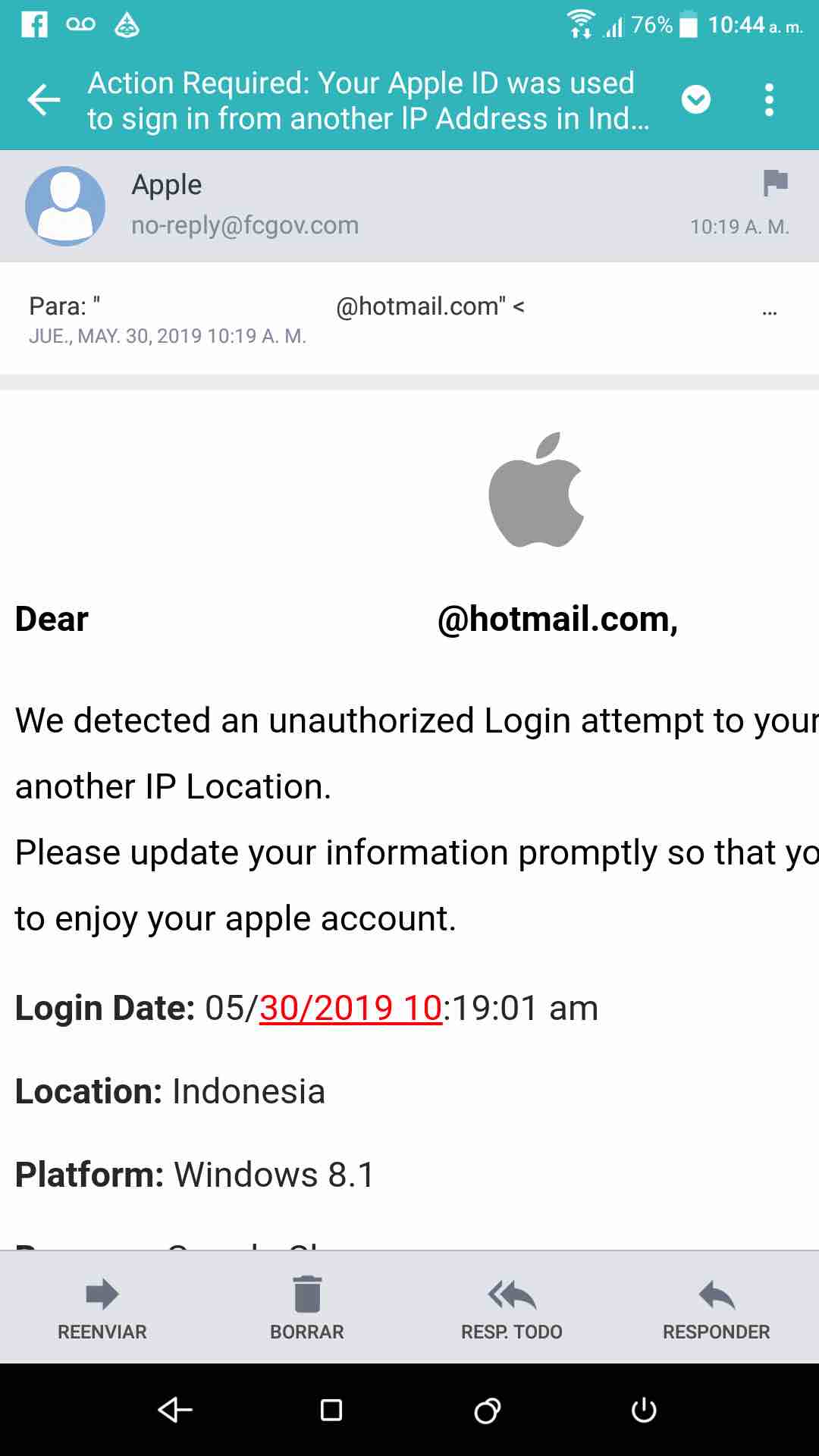 Desde hace días estoy recibiendo correos que dicen que son de Apple, coda que es mentira porque la dirección del correo nada que ver con Apple, que puedo hacer o mejor dicho que pueden hacer ustedes para proteger porque ya hice lo que me recomienda Apple pero aun me siento inquieto
